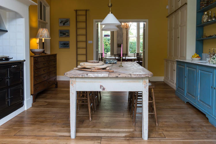 Pardon me. I’m just an English kitchen junkie. Can’t get enough. Like this renovation based on period design with an injection of colour. Sunny yellow, ancient scrubbed kitchen table, dresser filled with china and a comfortable armchair by the range. Bliss. Hampshire Kitchen by Max Rollitt.