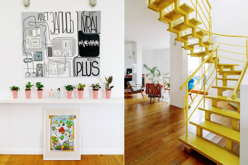 Happy Thanksgiving fellow Canadians! I am still trying to recuperate from the massive feast I shared with my family last night (turkey and ALL the fixings, plus 3 types of pie), and somehow I have to get some work done around the house. My paint supplies provided by Farrow & Ball arrived last week for my living room and I am so freaking excited to get started. I went with down pipe in estate emulsion for the walls, down pipe in full gloss for all of the trim (YES! I am painting out the mahogany!) and fireplace, and plummett in estate emulsion for the ceiling. Today husband and I have to deal with the ugly nooks in on either side of the west facing window. All that to say, I have alot to do on this holiday Monday, so I leave you with this really funky little apartment in Moscow via The Village. (Sorry, short on pet entries again this week)