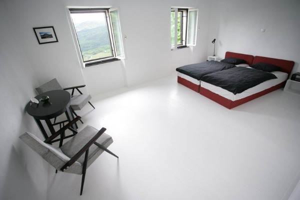 A few weeks ago Zdenka sent pictures of her adorable pups for Pets on Furniture. I loved what I saw of her Croatian home in the background. Of course I didn’t go lurking straight away. No I only decided to snoop further today. I’m glad I did! Zdenka’s home is amazing. Simple, stylish, fresh and… you can stay there. It’s the House of Gold and perches in a steep winding lane in the medieval village of Motovun. I’m thinking of getting together a house party. Want to come? (If only it wasn’t a dream… I’d love to visit Croatia.) If you want to see what Zdenka started with and her renovation journey visit her blog. It’s not for the faint hearted. OMG what a transformation!